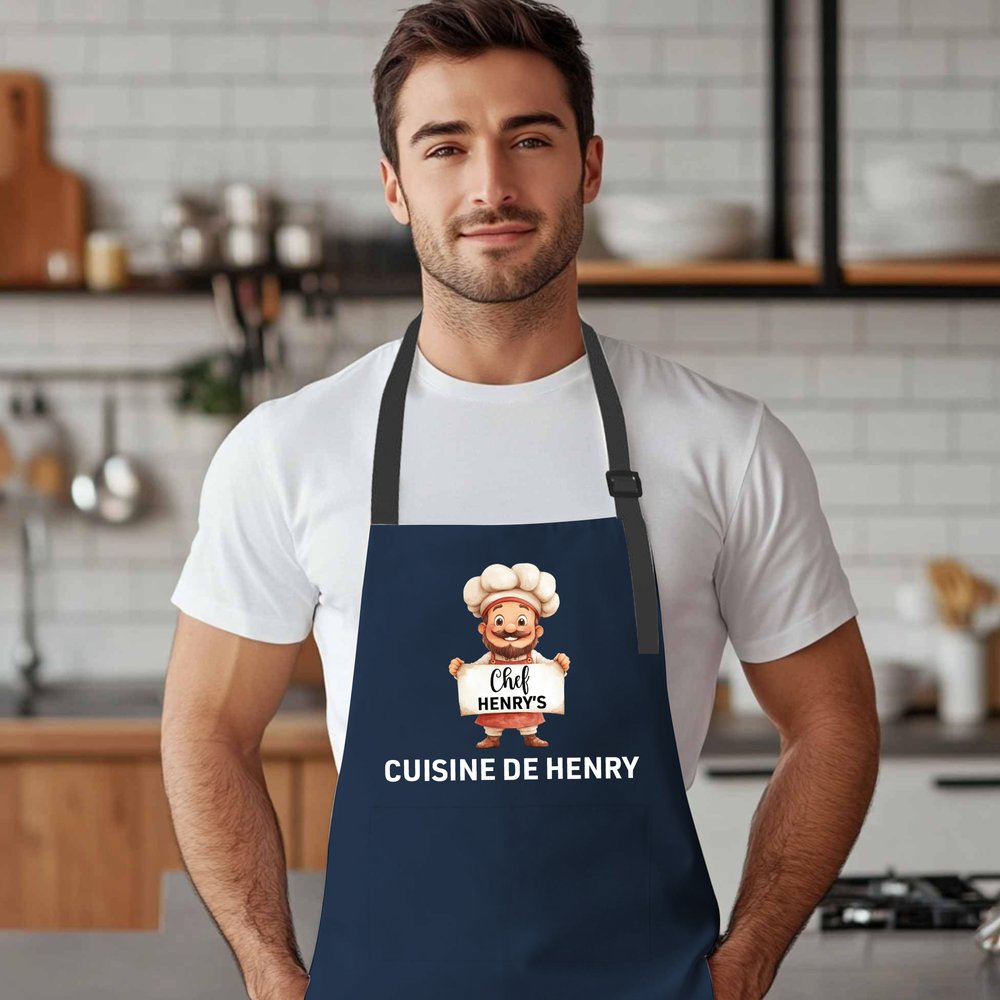 Ce tablier est orné d'un joli dessin animé de chef cuisinier et d'un nom personnalisable, ce qui rompt avec la monotonie des tabliers traditionnels. Vous avez le choix entre 11 motifs et vous pouvez également personnaliser votre propre texte. Ce design met en valeur l'amour de la cuisine tout en transmettant une atmosphère chaleureuse grâce à son humour et à sa vivacité. Que vous soyez un chef en déplacement ou un cuisinier passionné à la maison, ce modèle personnalisé rend les moments passés dans la cuisine plus amusants et plus vivants, en mettant en valeur votre goût unique.