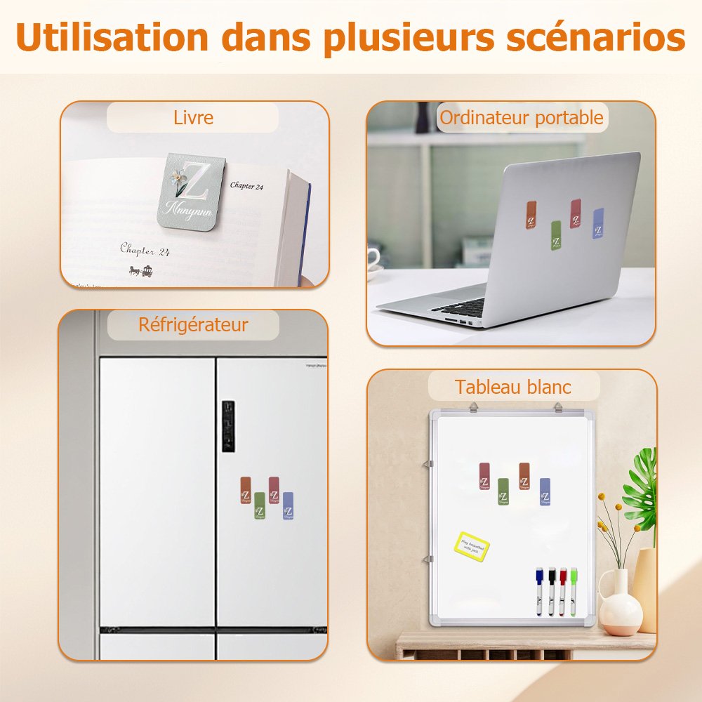 | Soins: | - Évitez de placer les marque-pages à proximité d'appareils électroniques, de haut-parleurs ou d'autres aimants puissants, car cela pourrait nuire à la fermeture magnétique. - Ne laissez pas les marque-pages en plein soleil ou dans des environnements chauds ou froids pendant de longues périodes. - Essuyez la surface du marque-page pour enlever la poussière ou les taches. N'utilisez pas d'eau, de produits chimiques ou de nettoyants abrasifs, car ils risquent d'endommager les matières. - Les marque-pages ayant une forte force magnétique, nous recommandons de les ouvrir et de les fermer en faisant glisser les deux côtés plutôt qu'en les tirant directement pour les ouvrir, afin d'assurer une longévité optimale. - Faites preuve de délicatesse lorsque vous attachez ou détachez les marque-pages des pages du livre. Évitez de tirer ou de tordre le marque-page avec force, ce qui pourrait endommager le mécanisme d'ouverture et de fermeture. |